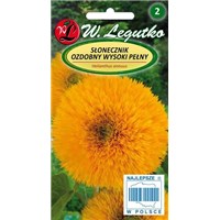Słonecznik ozdobny wysoki pełny to roślina jednoroczna która rozweseli każdy ogród. Wysiew nasion kwiecień/maj wprost do gruntu. Słonecznik lubi glebę żyzną, umiarkowanie wilgotną i miejsce słoneczne. Osiąga wysokość około 160 cm. Słonecznik ozdobny wysoki wykształca osadzone pojedynczo, półkuliste kwiatostany, zbudowane z kwiatów rurkowatych i języczkowych. Mogą one być pełne bądź półpełne. .Kwitnienie rozpoczyna się w lipcu i kończy w październiku. Słoneczniki ozdobne wysiane w rzędach idealnie sprawdzają się jako osłona płotów i podjazdów. Pięknie prezentują się także w bukietach ponieważ bardzo długo zachowuje swoją świeżość.