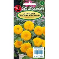 Słonecznik ozdobny Teddy Bear to roślina jednoroczna która rozweseli każdy ogród. Wysiew nasion kwiecień/maj wprost do gruntu. Słonecznik lubi glebę żyzną, umiarkowanie wilgotną i miejsce słoneczne. Osiąga wysokość około 50 - 60 cm. Słonecznik ozdobny niski wykształca osadzone pojedynczo, półkuliste kwiatostany, zbudowane z kwiatów rurkowatych i języczkowych. Mogą one być pełne bądź półpełne. .Kwitnienie rozpoczyna się w lipcu i kończy we wrześniu. Słoneczniki ozdobne Teddy Bear doskonale sprawdzą się na rabatach oraz w pojemnikach lub skrzynkach ozdabiając nasze tarasy. Pięknie prezentują się także w bukietach ponieważ bardzo długo zachowują swoją świeżość.