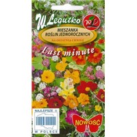 Mieszanka roślin jednorocznych "Last minute" to specjalnie wyselekcjonowana grupa nasion, które potrafią w bardzo szybkim czasie zakwitnąć. Ostatnią porą na wysiew tych pięknych, różnokolorowych kwiatów przypada na drugą połowę lipca. Rosną w bardzo szybkim tępie, więc można się ich spodziewać już po kilku tygodniach od wysiania. Ten typ kwiatów to bardzo dobra alternatywa po zakończeniu kwitnienia wiosennych roślin. Świetnie komponują się w przydomowych ogródkach, potrafią przystroić każdy ponury skrawek podwórka. Lubi miejsca ciepłe i słoneczne o żyznej glebie.