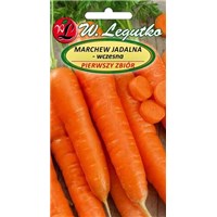 Marchew Pierwszy Zbiór to odmiana wczesna której siew odbywa się od marca do czerwca w rozstawach 23 - 35 x 5 cm. Najlepiej wysiewać na stanowisku słonecznym, osłoniętym od wiatru, na umiarkowanie wilgotnej i bogatej w próchnice glebie. Korzenie nie osiągają dużych rozmiarów, dorastają do około 11 cm lecz są soczyste, smaczne oraz bogate w zdrowe cukry i karoten. Dzięki czemu odmiana Pierwszy Zbiór idealnie nadaje się na surówki, soki oraz do wszelkiego rodzaju ciast. Nie zaleca się jej mrożenia ani przechowywania ponieważ traci ona swoje walory smakowe. Zawiera dużo witamin takich jak: C, K, E, PP oraz minerałów : fosfor, żelazo, magnez i potas. Zbiór plonów odbywa się od czerwca do października.