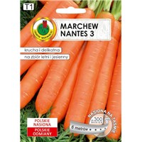 Marchew Nantes 3 to odmiana średnio wczesna która wyróżnia się nieco krótszym okresem wegetacji oraz większym plonowaniem. Wysiew nasion bezpośrednio do gruntu najlepiej wykonać na początku kwietnia a w maju najlepiej wykonać przerywkę pozostawiając sadzonki w odstępach 4x30 cm. Aby plony były obfite marchew należy wysiać na glebie żyznej, umiarkowanie wilgotnej oraz o odczynie gleby obojętnym na stanowisku nasłonecznionym. Przeznaczona na zbiór letni lub jesienny. Odmiana ta zawiera dużo beta - karotenu który wpływa korzystnie na nasz wzrok oraz minerały takie jak potas, fosfor, żelazo, magnez i wapń. Idealnie nadaje się na soki, surówki czy przetwory jednak w małym stopniu nadaje się na przechowywanie. Marchew najlepiej rośnie w temperaturach od 15 do 21 stopni Celsjusza.