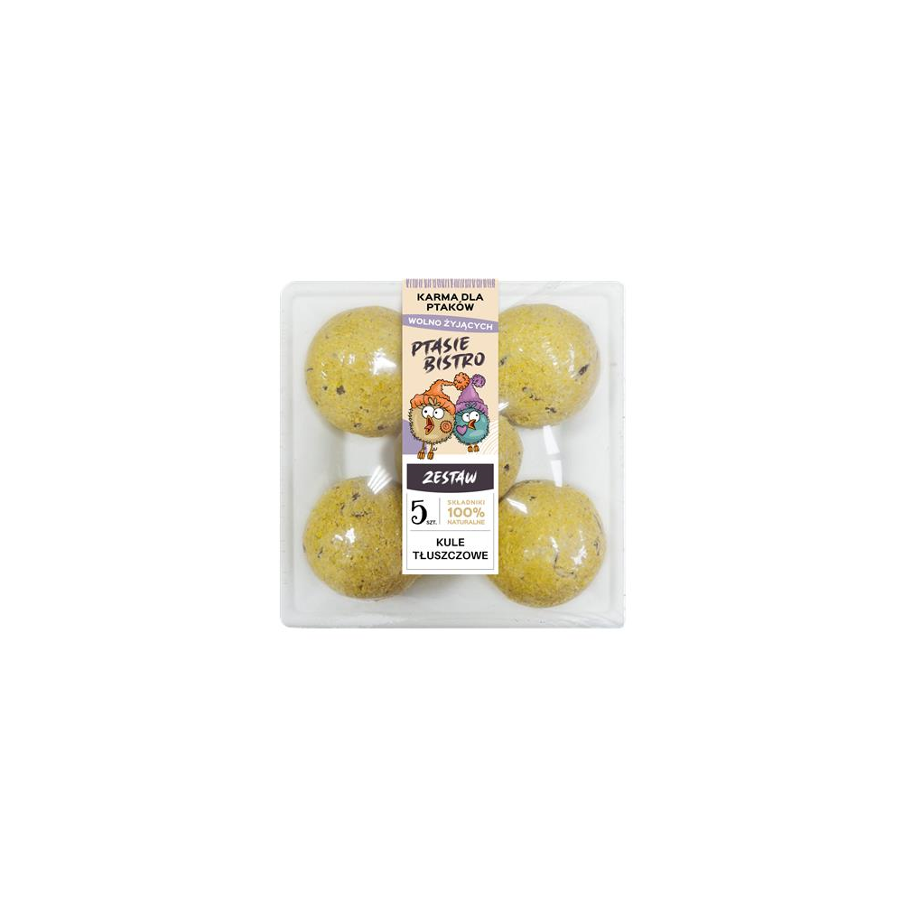 Zestaw 5 kul tłuszczowych na tacce, to karma dla ptaków, która przyda