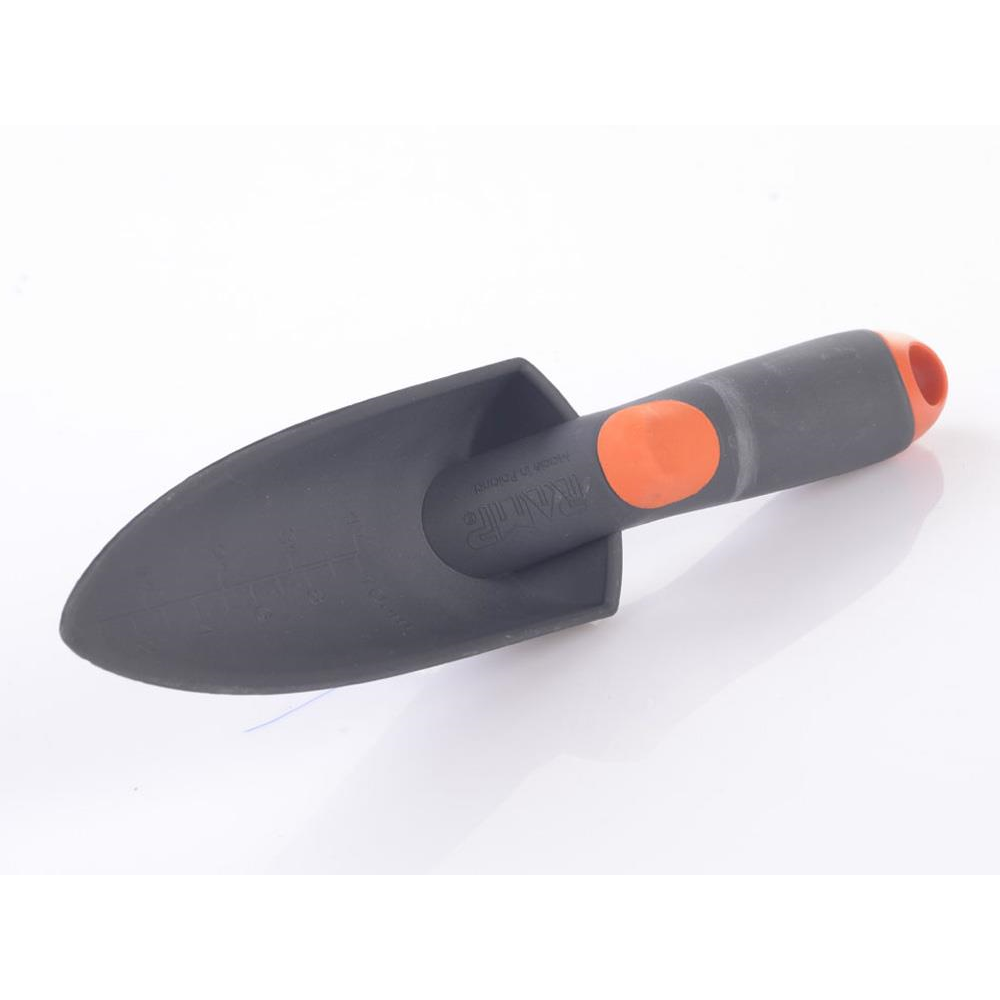 Wąska łopatka wykonana z wysokiej jakości tworzywa do przesadzania roślin w ogrodzie. Lekka, wyposażona w ergonomiczną rączkę i podziałkę (centymetry i cale). Szerokość robocza 6 cm. Długość z rękojeścią 28 cm.