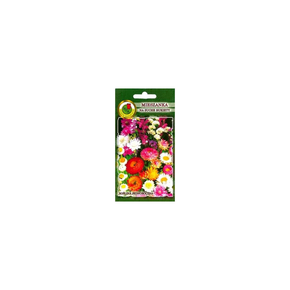 Mieszanka roślin specjalnie wyselekcjonowanych, dobrze dobranych odmian, które nadają się na suche bukiety. Można z nich stworzyć wiele wspaniałych kompozycji kwiatowych. Nadają się do dekoracji wnętrz, ponieważ te piękne różnokolorowe kwiaty potrafią przystroić każde ponure mieszkanie. Lubi miejsca słoneczne i ciepłe o przepuszczalnej, żyznej glebie. Wysiew nasion na przełomie kwietnie i maja wprost do gruntu. Kwitnie na przelomie czerwca i października.