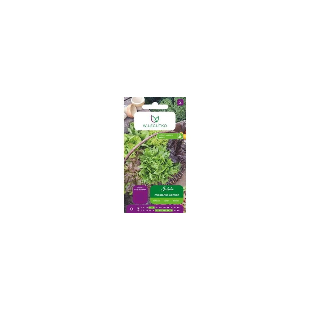 Atrakcyjna i wartościowa mieszanka różnych odmian sałaty. Z jednego terminu siewu można uzyskać rośliny o zróżnicowanym pokroju i smaku. Wysiew wprost do gruntu od marca do maja, w rzędy co 30 cm i 20-30 cm w rzędzie.