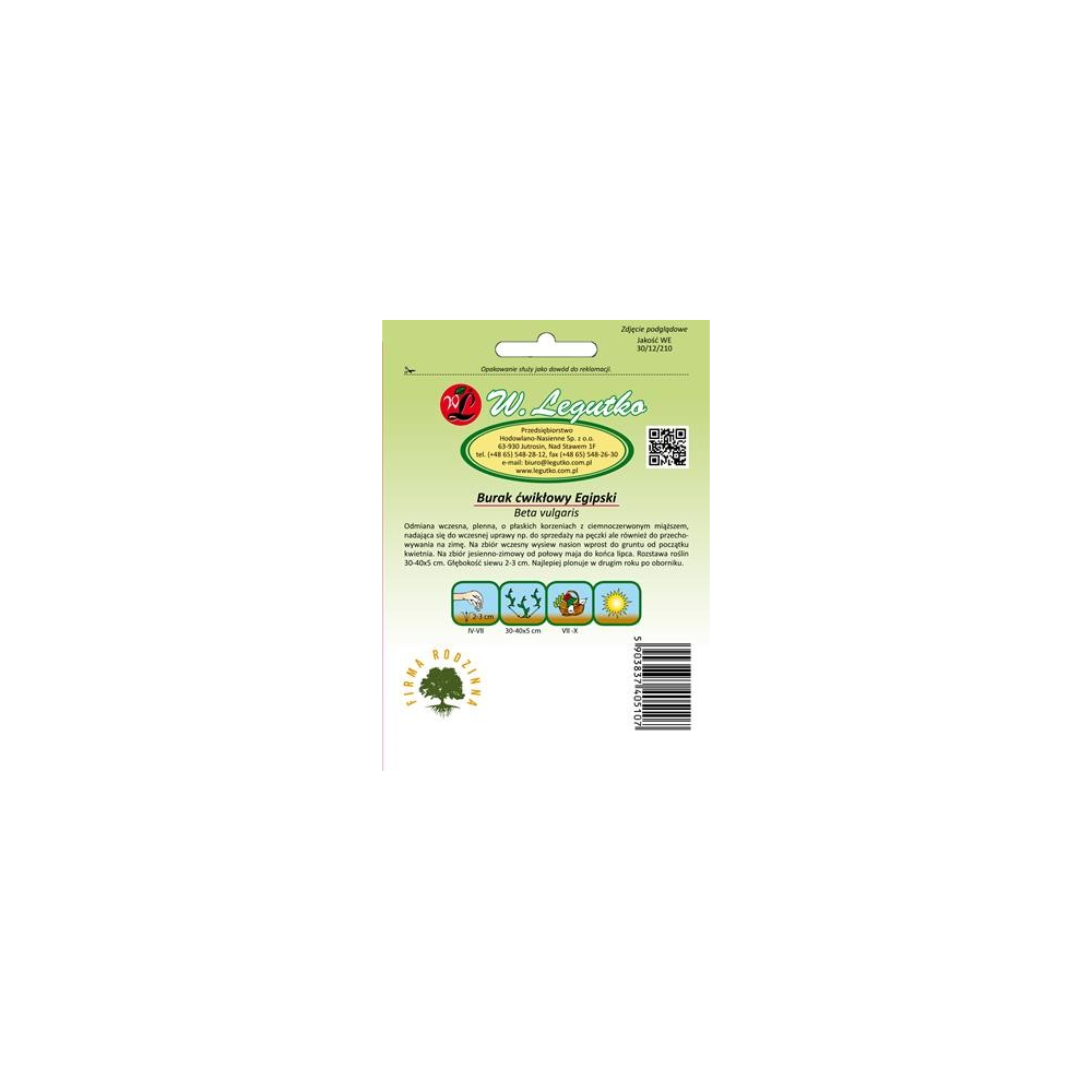 Nasiona wysiewamy wprost na miejsce stałe do gruntu od kwietnia do czerwca w rzędy co 30-50 cm. Do uprawy należy wybrać glebę przepuszczalną, zwięzłą ale bez skłonności do zaskorupiania się oraz niezbyt kwaśną. Buraki są gotowe do zbioru od połowy lipca do października.