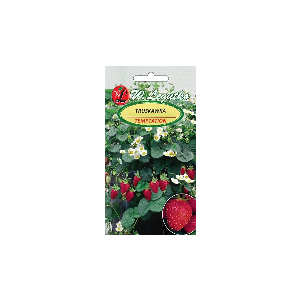 Truskawka Temptation to odmiana która wyróżnia się zwisającymi, pokładającymi się pędami o dużej ilości kwiatów. Owoce są bardzo soczyste, duże i doskonale nadają się na soki, oraz do bezpośredniego spożycia. Możemy się nimi cieszyć już po 4 miesiącach od wysiewu. Osiąga wysokość od 15 do 45 cm. Nasiona do miejsca docelowego wysiewamy w maju. Jest oporna na różnego rodzaju choroby. Roślina przetrzymuje zimę w gruncie lecz musi być odpowiednio zabezpieczona, zahamowuje swój wzrost gdy temperatura spada do ok 0 stopni Celsjusza. Truskawka Temptation wymaga podłoża przepuszczalnego, umiarkowanie wilgotnego i dobrze odchwaszczonego. Odmiana tej truskawki idealnie nadaje się do uprawy w doniczkach i podwieszanych pojemnikach.