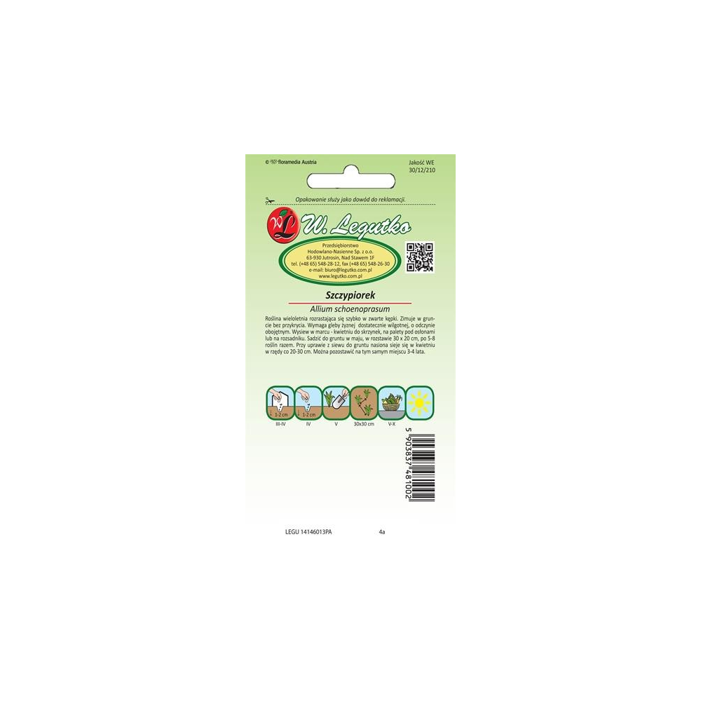 Opakowanie zawiera 1g nasion, zasady uprawy oraz datę przydatności do siewu.