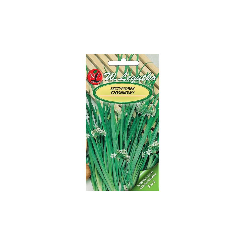 Szczypiorek Czosnkowy to roślina o nietypowym smaku która łączy smak szczypiorku i czosnku. Liście są jasnozielone, rurkowate, o trójkątnym przekroju. Miejsce na wysiew powinno być słoneczne a gleba umiarkowanie wilgotna i bogata w próchnicę oraz wapń. Prezentowany gatunek spokojnie może zimować w gruncie i jest całkowicie mrozoodporny. Wyrazisty aromat szczypiorku podkreśla walory smakowe wielu potraw na przykład sałatek, sosów, potraw mięsnych i ziemniaczanych. Roślina ma doskonałe działanie prozdrowotne ponieważ zawiera dużo minerałów takich jak : siarkę, wapń, potas, magnez oraz dużą ilość witaminy C.