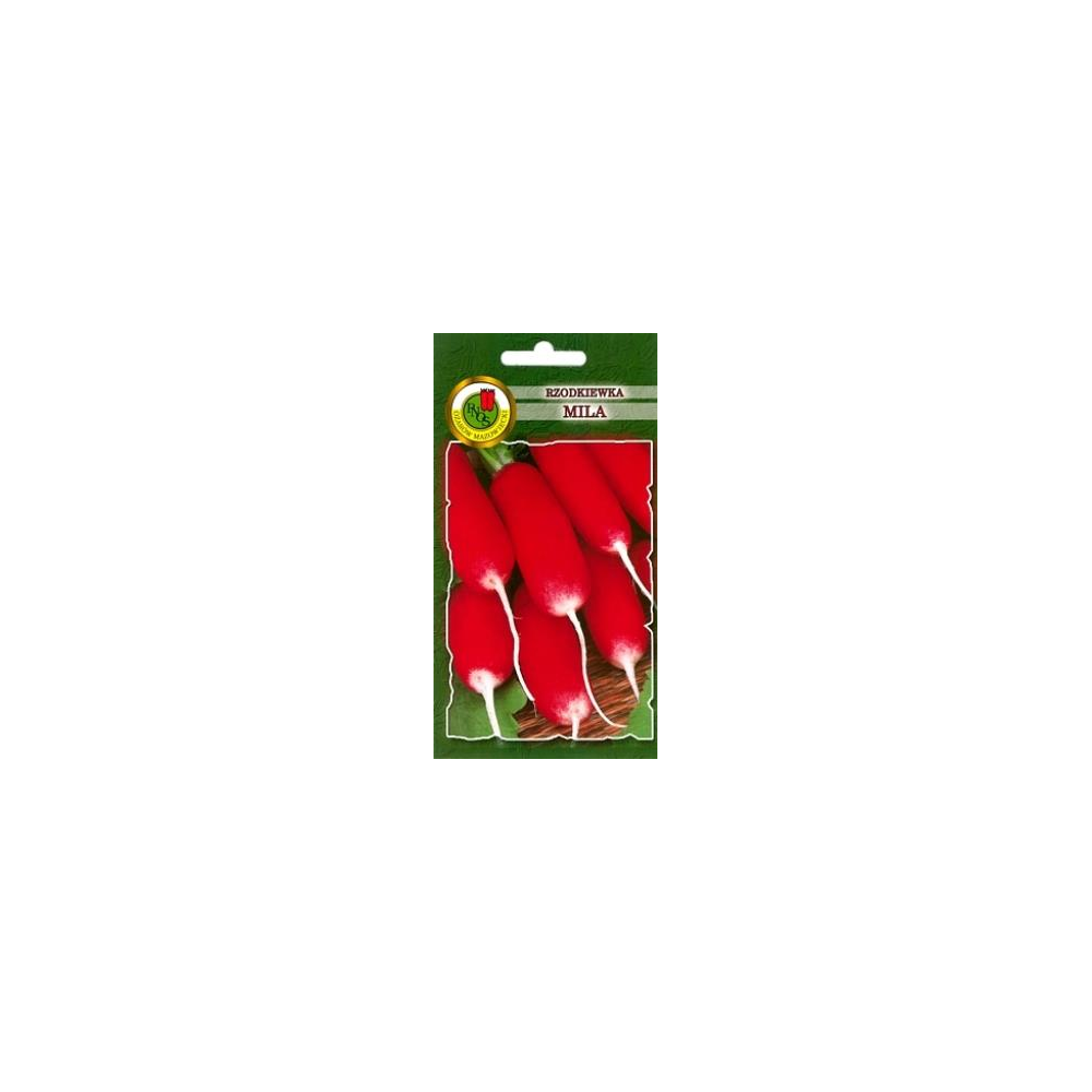 Rzodkiewka Mila to wczesna i bardzo plenna odmiana, charakteryzująca się szybkim wzrostem, wytwarzająca podłużne, cylindryczne rzodkiewki osiągające 3,5 – 5,5 cm długości. Intensywnie biały miąższ jest łagodny w smaku i odporny na parcenie, pokrywa go skórka w kolorze ciemnoczerwonym z białym czubkiem. Rzodkiewki zawierają duże ilości witaminy C oraz witamin z grupy B, a także magnez, wapń, potas, żelazo i fosfor. Polecane są do bezpośredniego spożycia, jako składnik sałatek i surówek oraz dodatek do kanapek, twarogu.