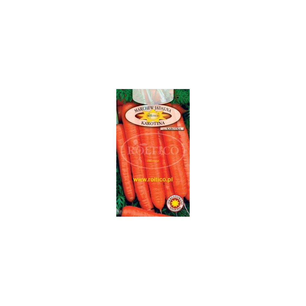 Marchew Karotina to odmiana średniowczesna o wysokiej zawartości karotenu oraz niskiej skłonności do kumulowania azotanów. Wysiew nasion od marca do sierpnia w rozstawie 25 - 30 cm. Okres wegetacji wynosi 120 dni a dojrzałe plony można zbierać od sierpnia do października. Najlepiej marchew wysiewać na stanowiskach słonecznych o żyznej glebie. Korzenie długie do 20 cm, soczyste oraz chrupiące o kształcie cylindrycznym. Marchew Karotina idealnie nadaje się do bezpośredniego spożycia jak i na przechowywanie. Zawiera dużo witamin takich jak C, E, K i witaminy z grupy B oraz minerały takie jak: magnez, wapń, potas, fosfor, błonnik i inne cenne minerały spożywcze.