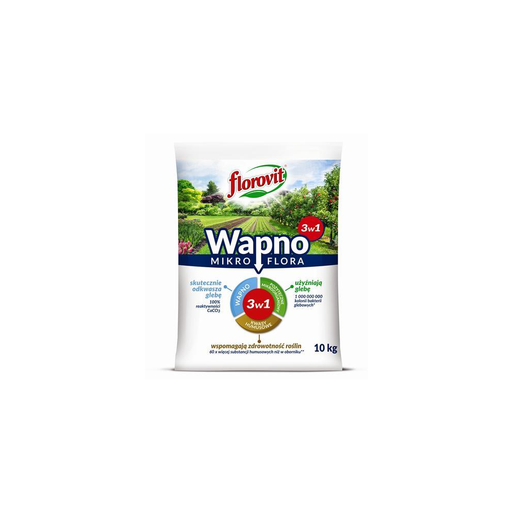 Florovit Mikroflora (3w1) to wielofunkcyjny nawóz, łączący działanie wapna