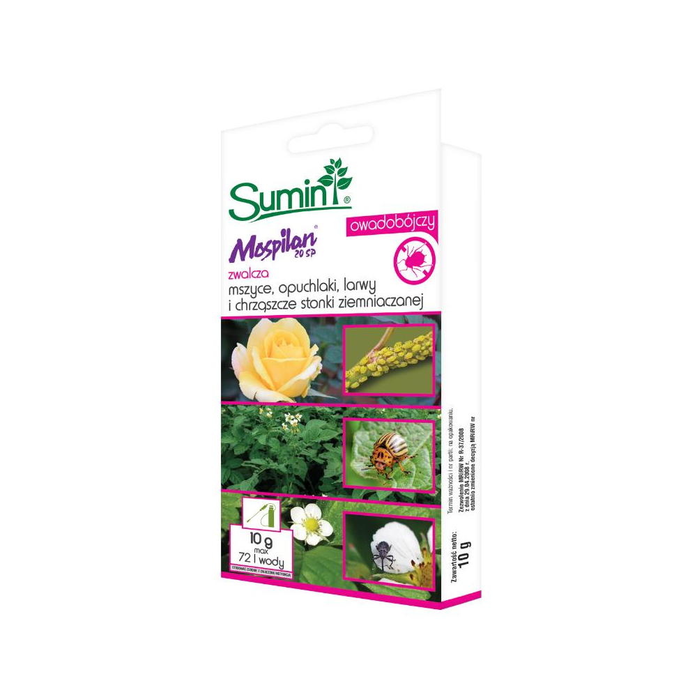 Środek owadobójczy w formie proszku rozpuszczalnego w wodzie, o działaniu kontaktowym i żołądkowym, przeznaczony do zwalczania szkodników ssących i gryzących. Na roślinie działa powierzchniowo, wgłębnie i systemicznie. Środek Mospilan 20 SP stosowany jest przy użyciu opryskiwaczy ręcznych.